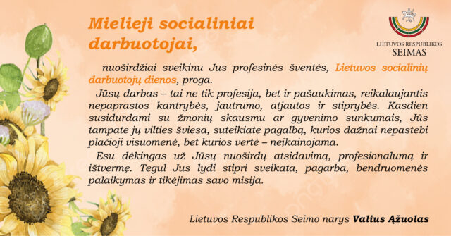 LR Seimo nario Valiaus Ąžuolo sveikinimas