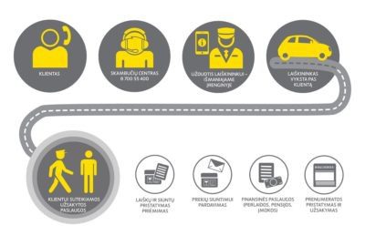 - Kai mobilusis laiškininkas paslaugas teikia atvykęs į kliento namus.