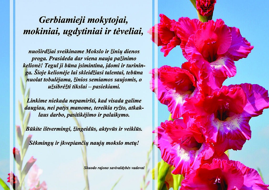 Mokslo ir žinių dienos proga sveikina Skuodo rajono savivaldybės vadovai