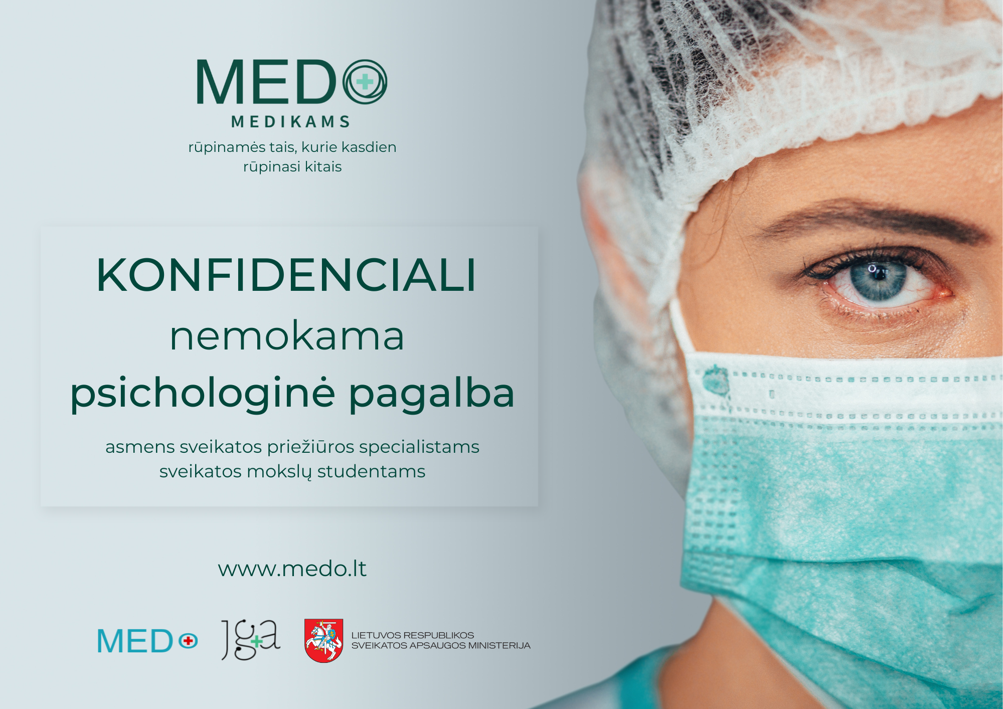 Teikiama nemokama konfidenciali psichologinė pagalba asmens sveikatos priežiūros specialistams ir sveikatos mokslų studentams.