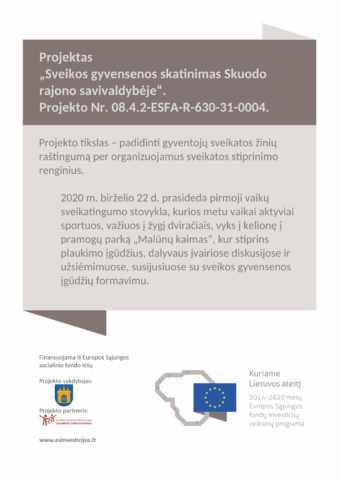 Prasidės pirmoji vaikų sveikatingumo stovykla: tai viena iš projekto „Sveikos gyvensenos skatinimas Skuodo rajono savivaldybėje“ veiklų