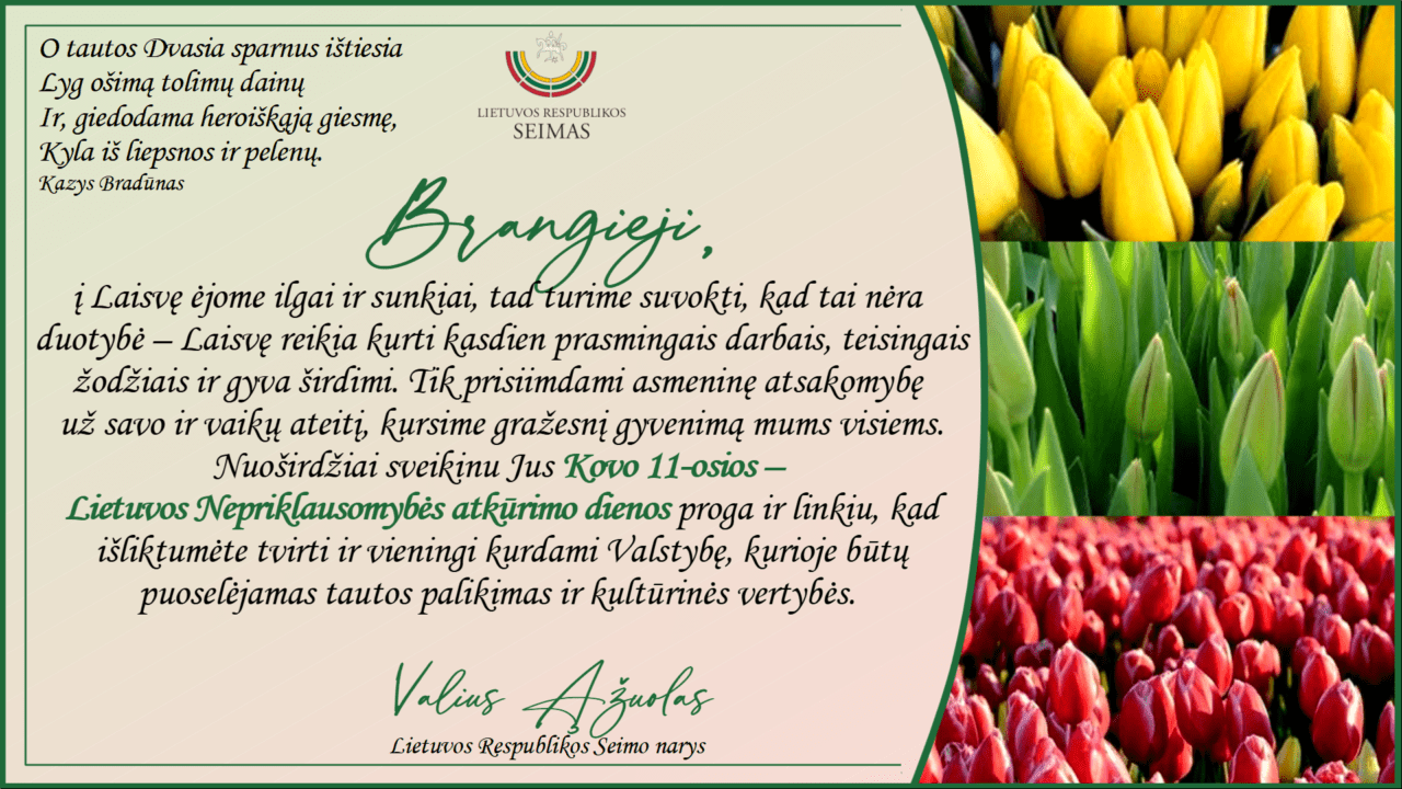 Seimo nario Valiaus Ąžuolo sveikinimas Kovo 11-osios proga