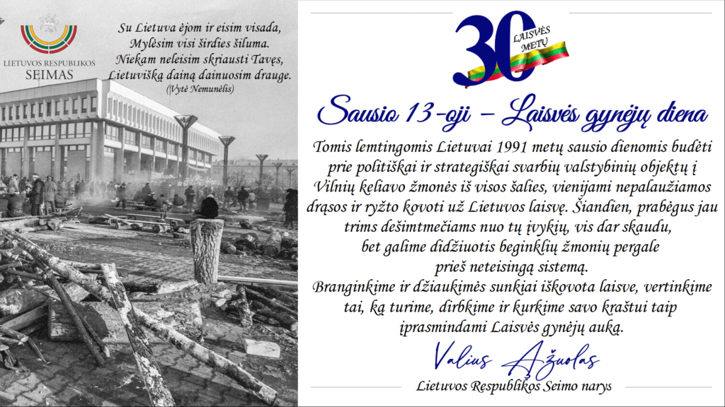 Seimo nario Valiaus Ąžuolo sveikinimas Laisvės gynėjų dienos proga
