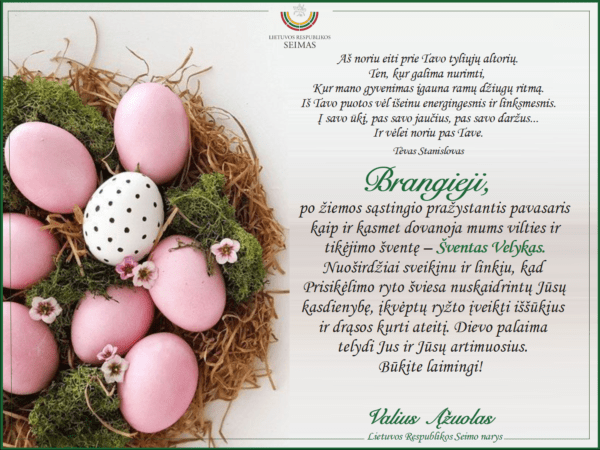 Seimo narys Valius Ąžuolas sveikina šv. Velykomis