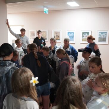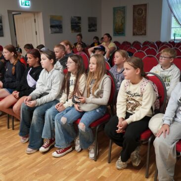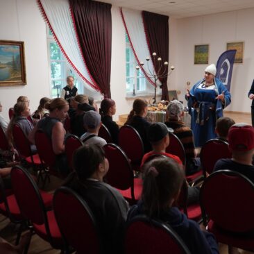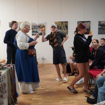 Tarptautinė vaikų vasaros stovykla, vykstanti pagal Latvijos–Lietuvos projektą LL-00228, atvyko į Skuodo muziejų, kur juos pasitiko edukatorė Daiva Budrienė ir istorikas Ignas Gulbinas.