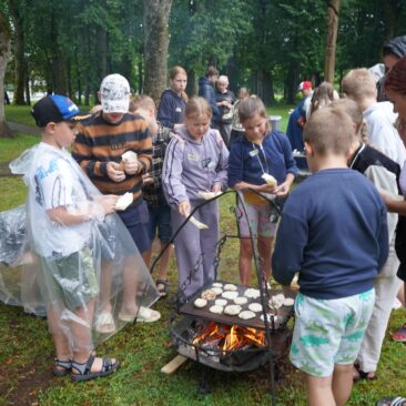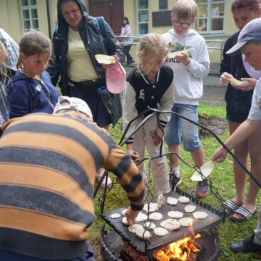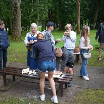 Dvaro kieme vaikai patys kepė kuršišką duoną ir ragavo naminį sviestą su kanapėmis. Apetitas augo ne dienomis, o minutėmis!