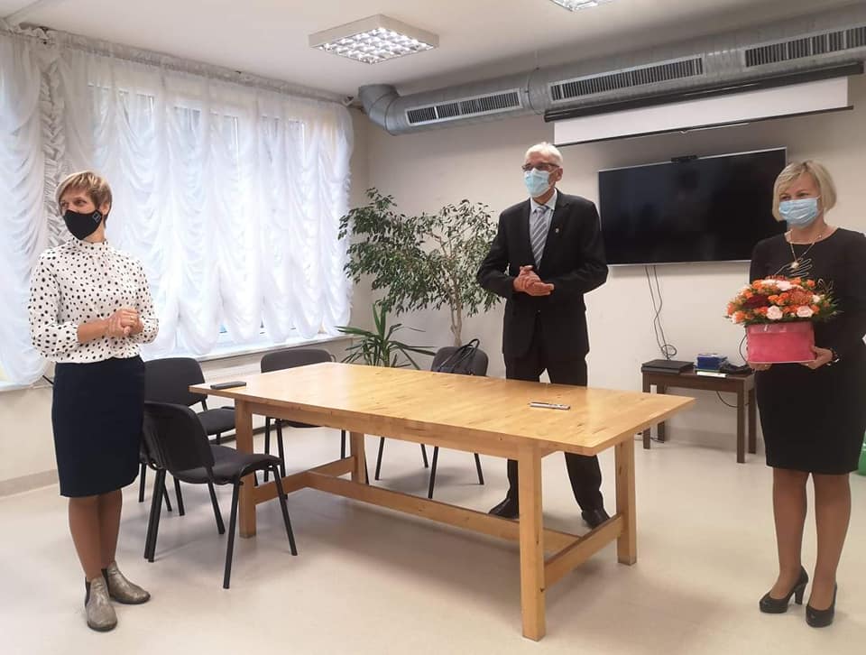 Naująją vadovę Skuodo rajono savivaldybės meras Petras Pušinskas ir Savivaldybės administracijos Socialinės paramos skyriaus vedėja Rasa Noreikienė pristatė įstaigos kolektyvui ir auklėtiniams.