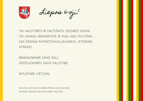 Skuodo rajono savivaldybės vadovai sveikina Valstybės ir Tautiškos giesmės dienos proga