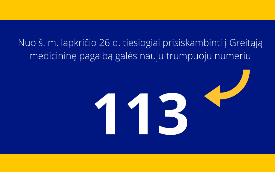 Nuo 2020 m. lapkričio 26 d. Skuodo rajono gyventojai tiesiogiai prisiskambinti į Greitąją medicininę pagalbą galės nauju trumpuoju numeriu 113 (buvęs 033) iš visų ryšio operatorių tinklų. Šiandien tokia žinia gauta iš viešosios įstaigos Greitosios medicininės pagalbos stoties. Nauju trumpuoju numeriu 113 turės naudotis ir kitų Klaipėdos apskrities savivaldybių gyventojai.